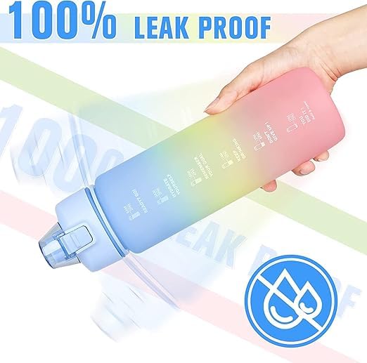 Generic - زجاجة مياه رياضية لتمارين اللياقة البدنية صحية بشاليموه ويد وحزام وستيكر مضادة للتسرب وللكسر مع علامات زمنية