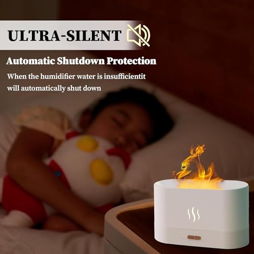 - 🔥【Versatile Humidifiers for Bedroom】: With 7 color options, our flame humidifier enhances relaxation and comfort. Designed for versatility, this oil diffuser with essential oils brings a soothing ambiance to any room. Its high-quality construction and smart LED lights create a realistic flame effect, doubling as a colorful night light.