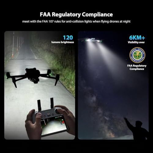 - Meet FAA for Night Flying More than 6km+ visible and 360 visibility ,meet with the FAA rules for anti-collision lights when flying drones at night. Beneficial for improving object warning and recognition, helping to prevent collisions and accidents.