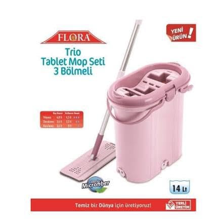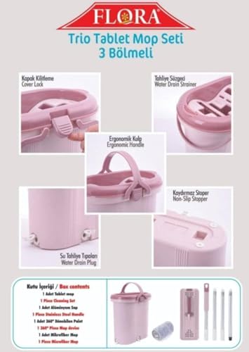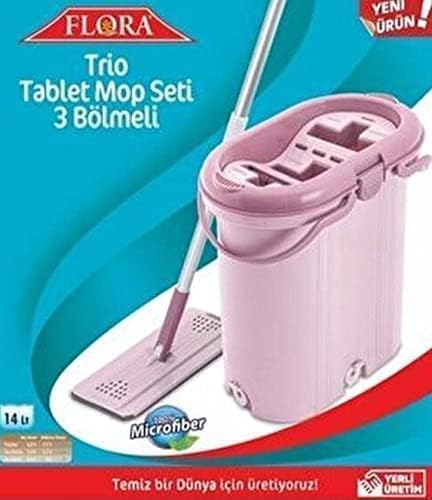 Generic - Flat Microfibre Mop with 3 Bucket, 2 Replacement, 14L