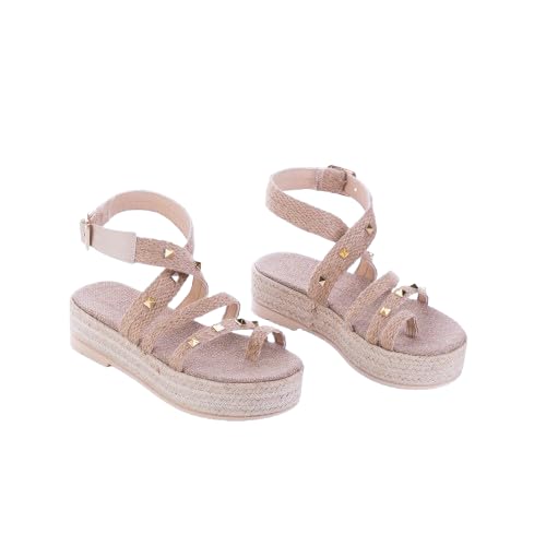 Life Stylish - صندل مسطح بقصة على شكل أشرطة مصنوع من الخيش، K-7
