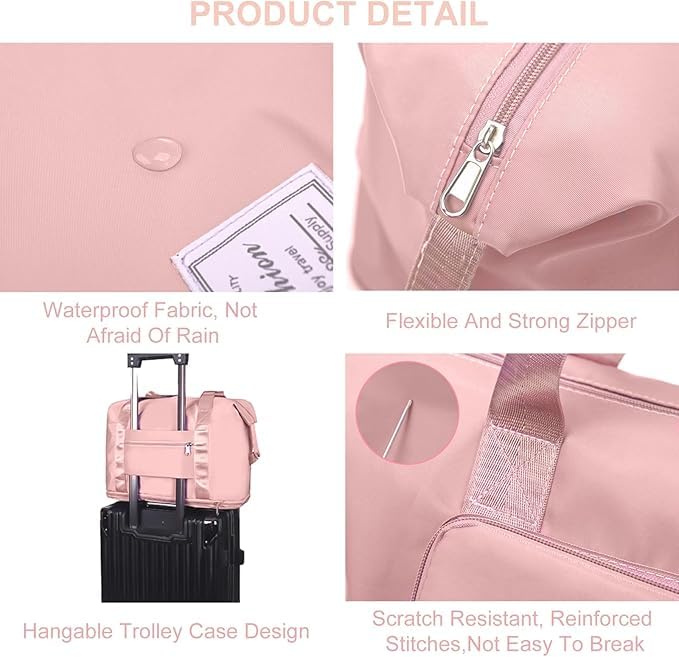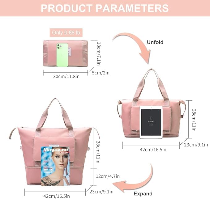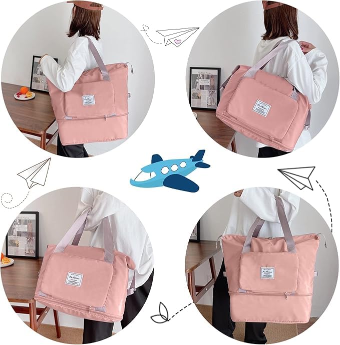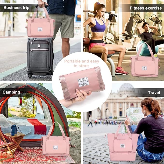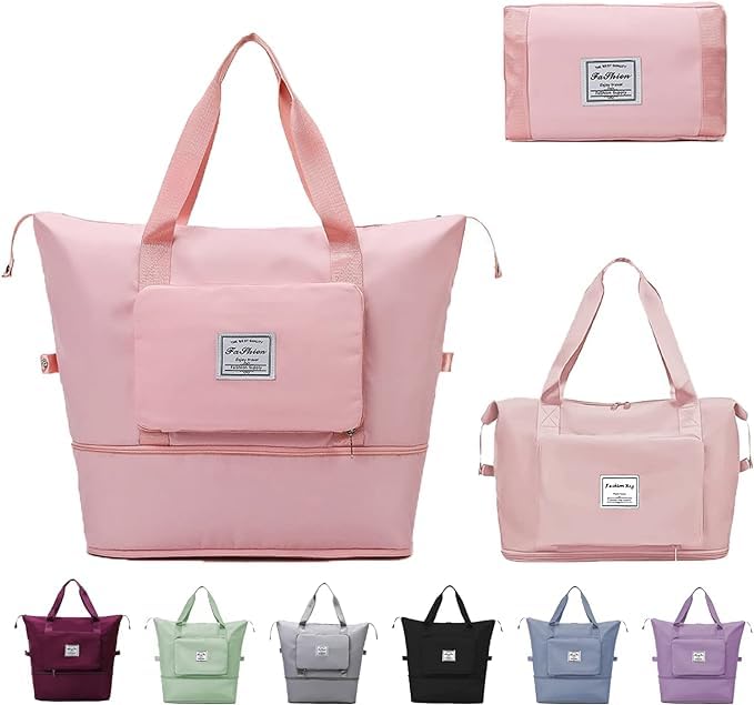 Generic - Foldable Travel Bag for Women, Large Capacity Waterproof Gym & Sports Bag with Handle, Perfect for Travel, Gym, and Sports Essentials, Durable and Compact (Pink)