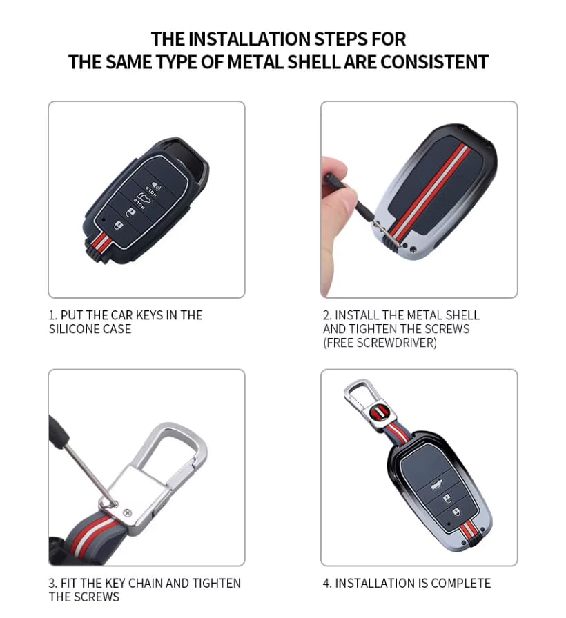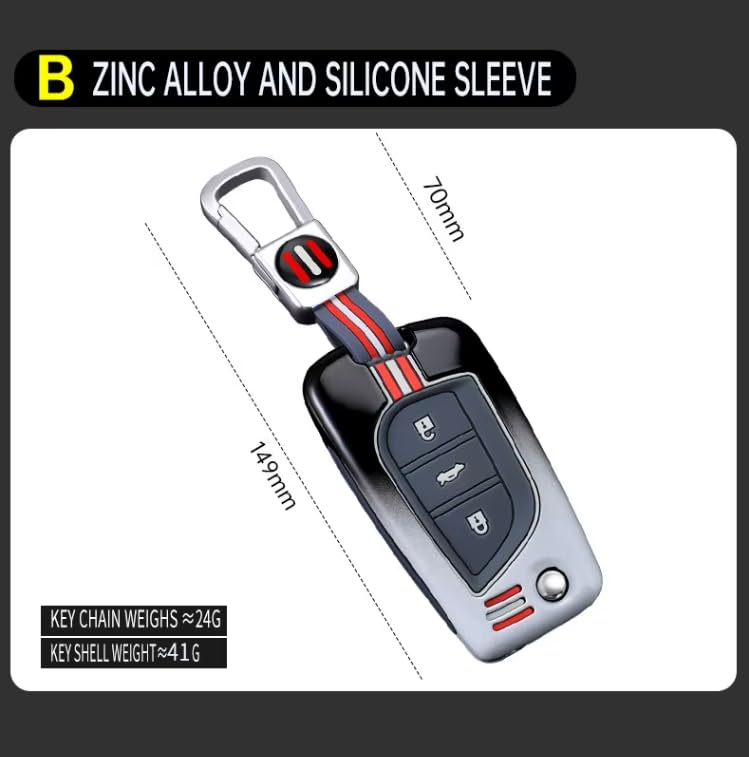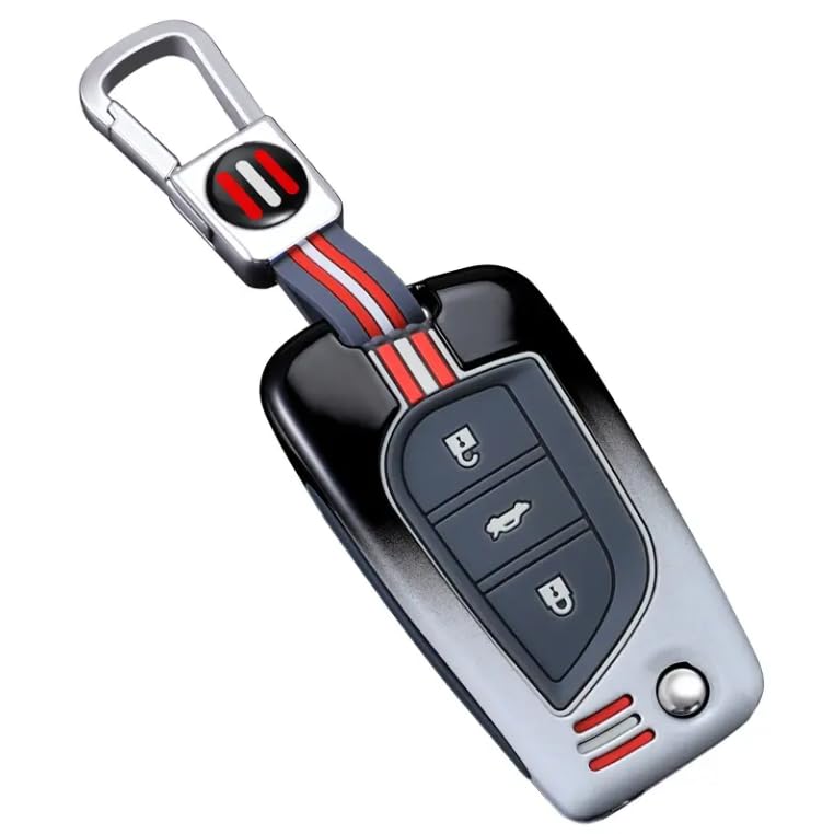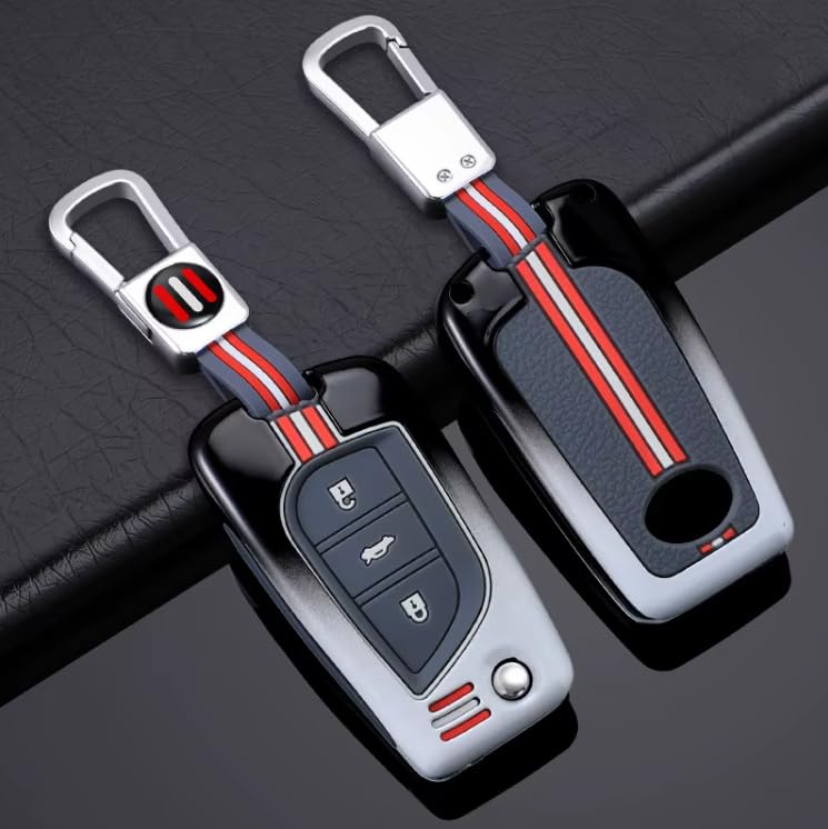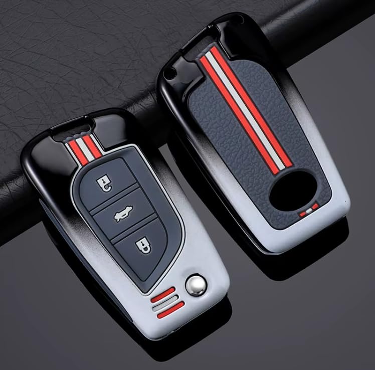 Generic - For Toyota Key Fob Cover Zinc Alloy with Silicone Lining - Premium Sport Design Black and Silver with Red Stripes