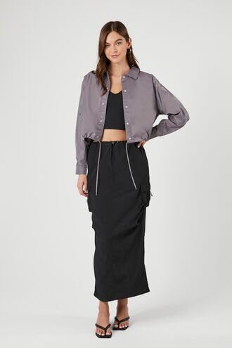 Forever 21 - FOREVER21 Women Cropped Coach Jacket