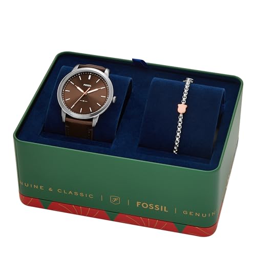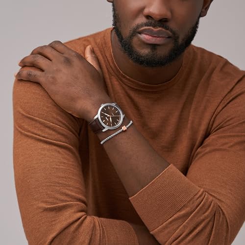 Fossil - Fossil Men's Minimalist Quartz Stainless Steel Watch and Bracelet Gift Set, Color: Silver/Brown Bracelet Set (Model: FS6019SET)