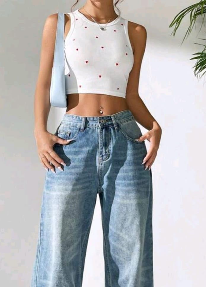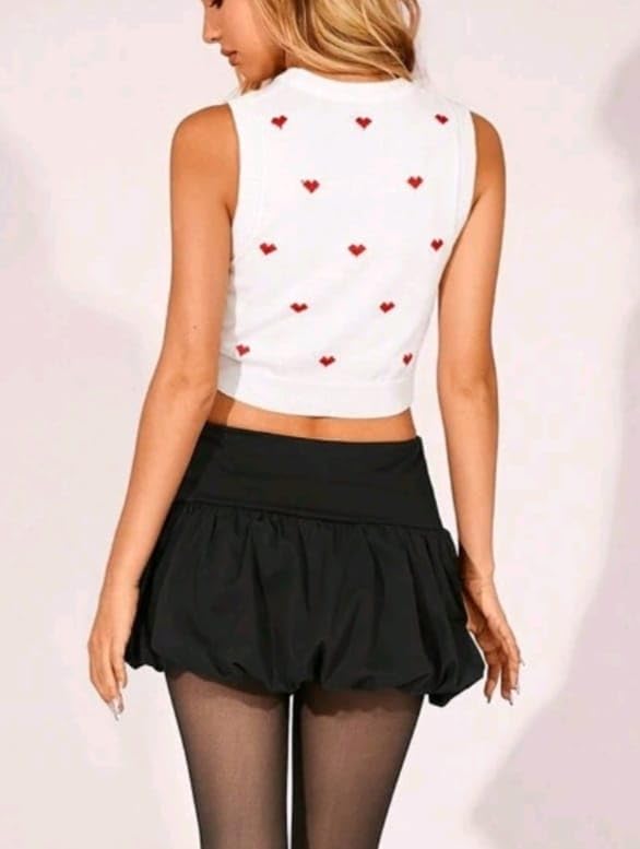 Generic - بيزك توب مضلع بقلوب جذابه كروب توب مع اكتاف كت عريضه توب حريمي انيق ليدخلكي عالم الجمال ويجعلكي ملكه الموضه من FOUR H كود 4007