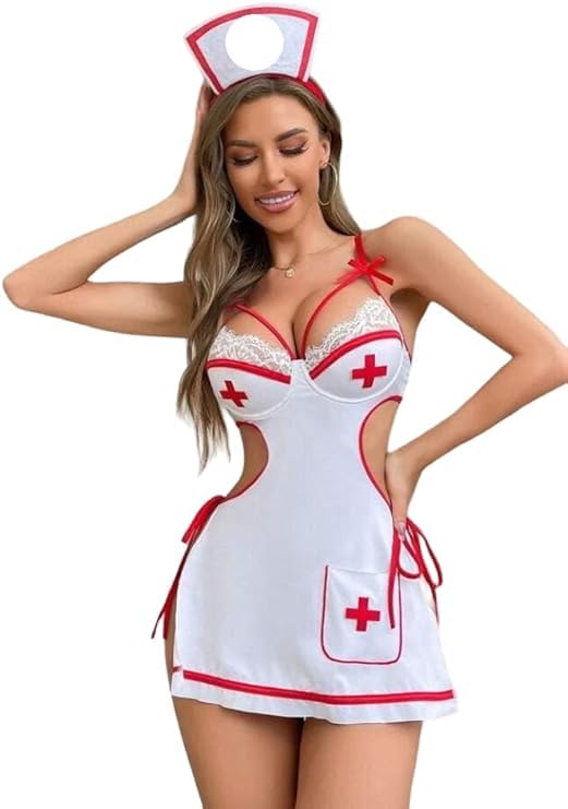 Generic - لانجيري سكسى لانجري مثير لانجري تنكر الممرضه الشقاه مع وشاح رأس أنيق جدااا بيبي دول قصير بلاى سوتس شفاف قميص نوم حريمى أنيق من Four H كود 595 (أبيض فى احمر ، XXL)