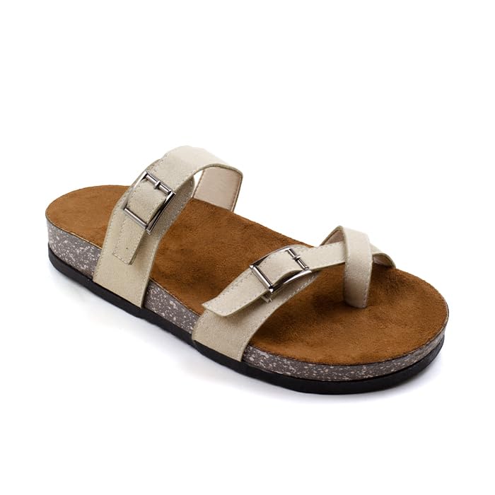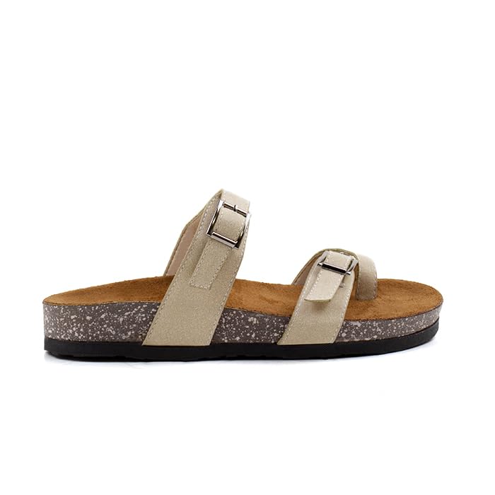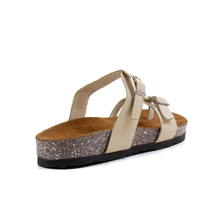 Fourteen - Fourteen Women's Flat Flip Flop with Two Front Stripes and Toe Multicolor Beige, 41 EU