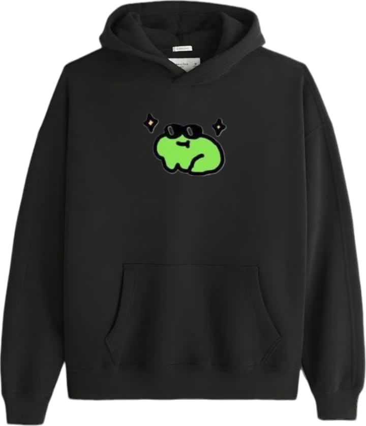 Generic - سويت شيرت بغطاء للرأس بتصميم ضفدع اسود 25