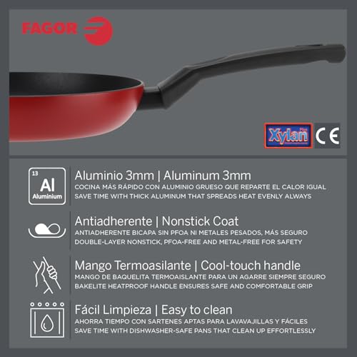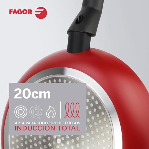 Fagor Commercial - طاسة قلي ايلان 3 بقطر 20 سم من فاجور، الألومنيوم، أحمر