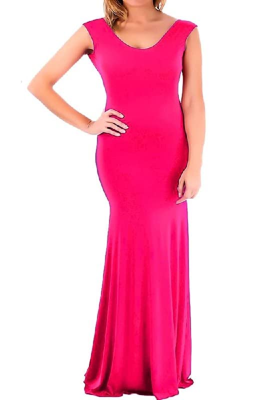 Generic - Fuchsia Long Sleeveless Dress with Back Chain