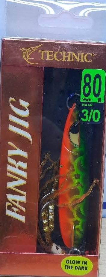 Generic - Funky Jig Fishing Hooks Glow in The Dark Double Helper Fishing Hooks with Octopus 80g/Hawk Size 0/3 Fire Tiger Vietnami