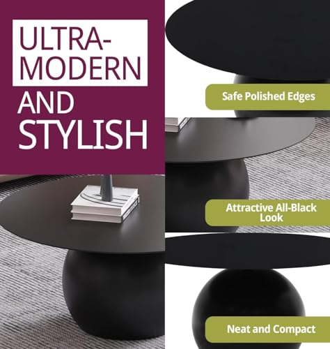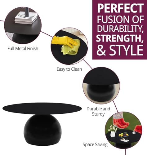 FurniFlex - طاولة قهوة دائرية معدنية من فورني فليكس بورتون، لون أسود