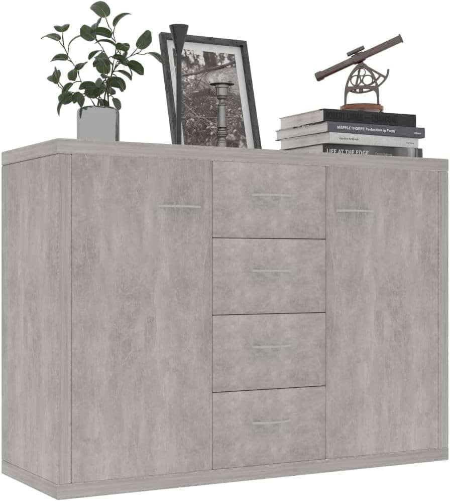 FurniFlex - Buffet Server Storage Cabinet Chipboard Sideboard, Concrete Grey