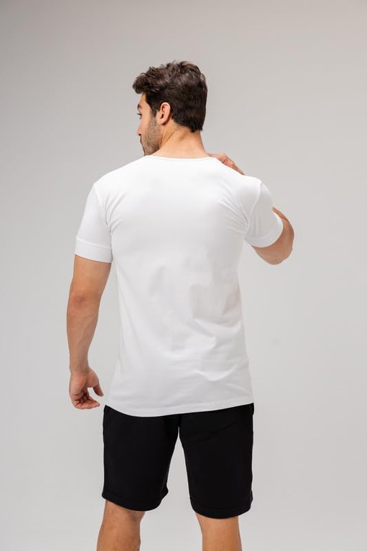 Future - فانلة داخلية نصف كم برقبة على شكل حرف V للرجال، من مزيج قطن ليكرا من فيوتشر