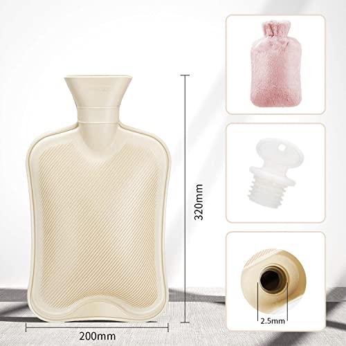 Fythao - Hot Water Bottle with Soft Cover (2 Liter) Classic Rubber Hot Water Bag for Cramps, Neck, Shoulders Pain Relief, Hot Cold Pack for Hot and Cold Therapy and Feet Warmer, Great Gift for Women and