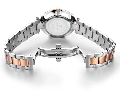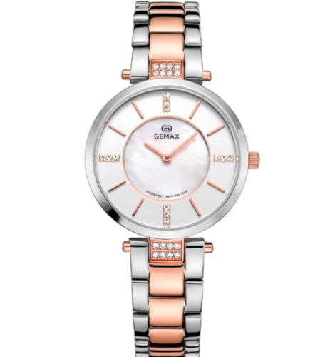 Gemax - ساعة ستانلس ستيل للنساء 2116-CPR-DW، فضي/ذهبي وردي، تناظري