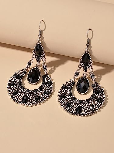 Generic - Gemstone Decor Hollow Out Earrings