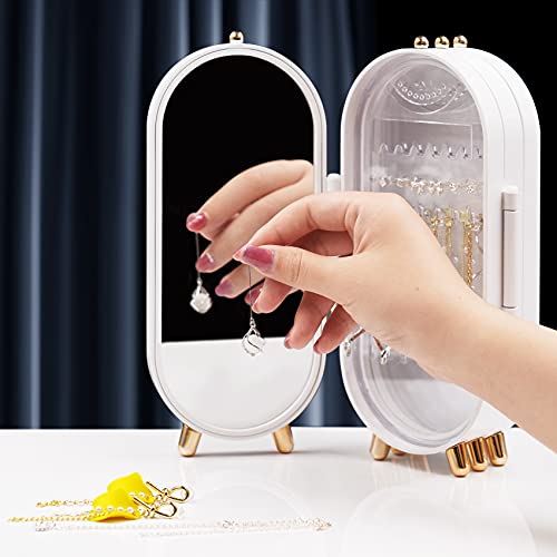 Generic - Generic 4 Doors Earring Holder Stand with Mirror (White)