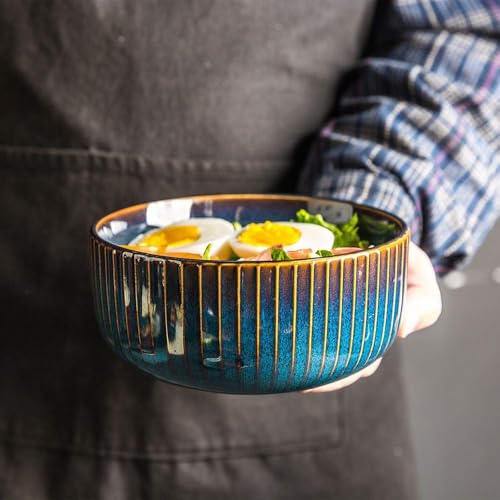 - ELEGANT DESIGN: Stunning blue porcelain bowl featuring luxurious golden geometric stripes, perfect for adding sophistication to your dining table