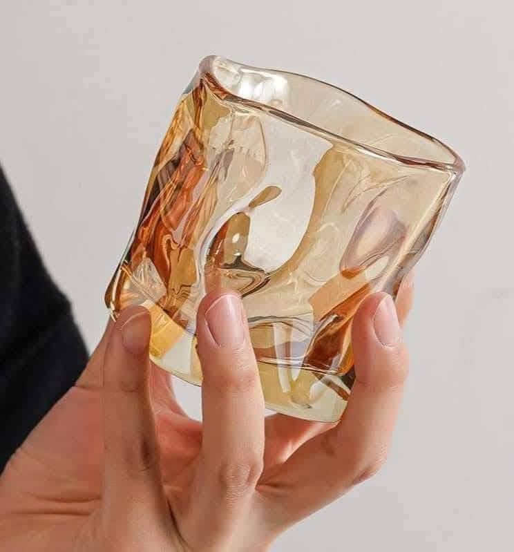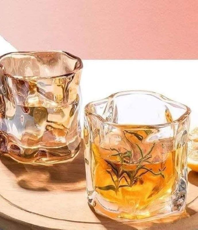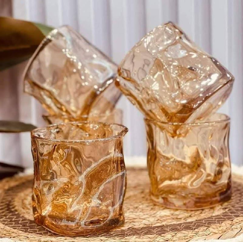 - تصميم أنيق: أكواب زجاج مزخرفة بشكل فريد بنمط مضلع مميز ولون كهرماني عسلي جميل يضيف الرقي إلى أي طاولة.