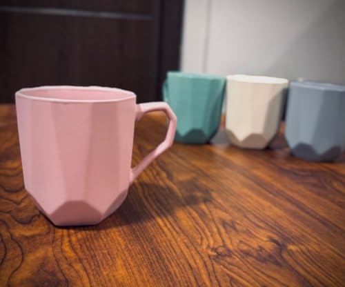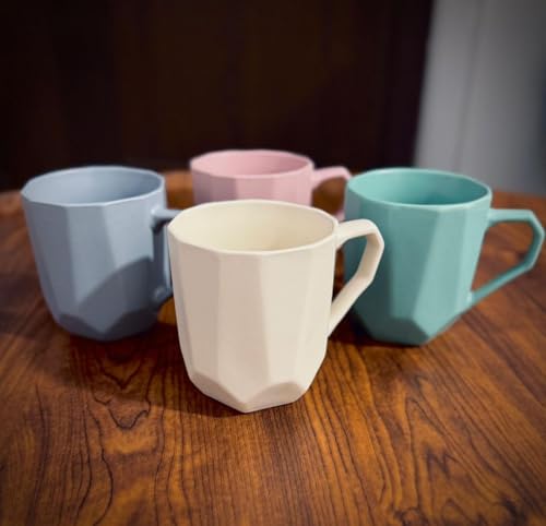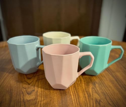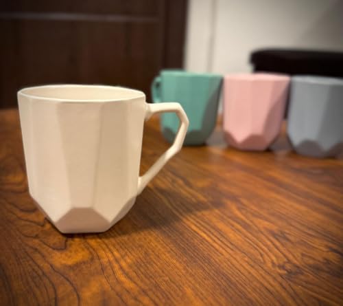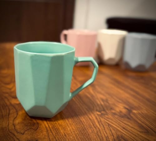 - تصميم عصري: أكواب بورسلين هندسية تتميز بنمط مضلع أنيق وزوايا معاصرة، متوفرة في مجموعة من ألوان الباستيل الجميلة بما في ذلك النعناع والوردي والأزرق والكريمي