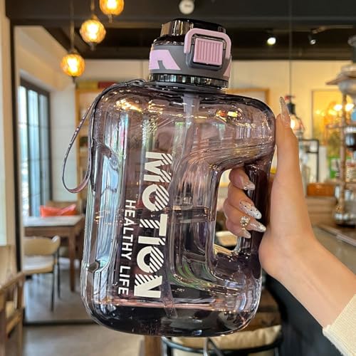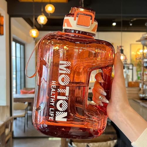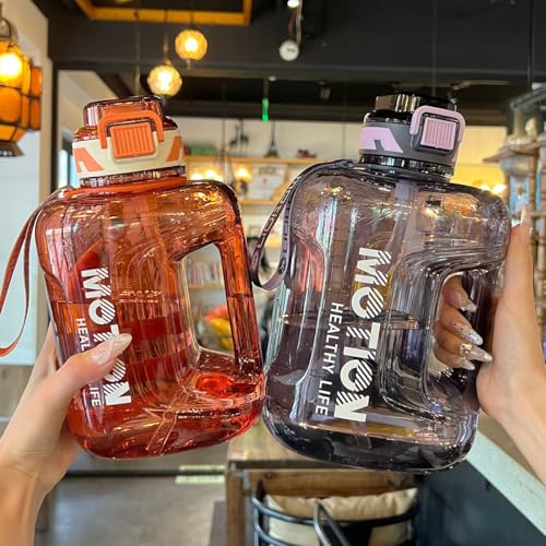 Generic - زجاجة مياه جيركين من الأكريليك المقاوم للصدمات، تصميم محمول مع شفاطة سيليكون، مقبض، غطاء محكم