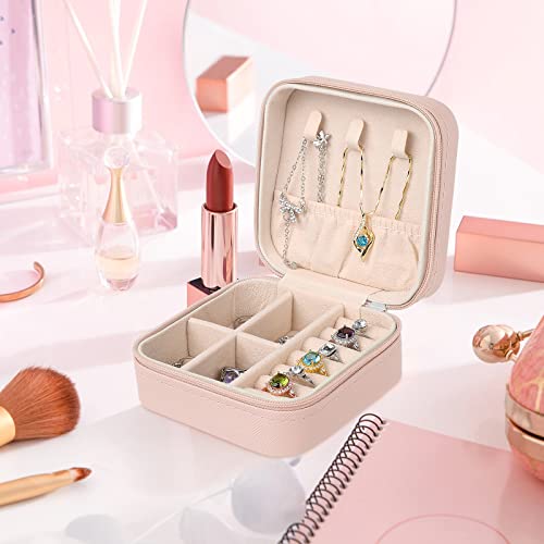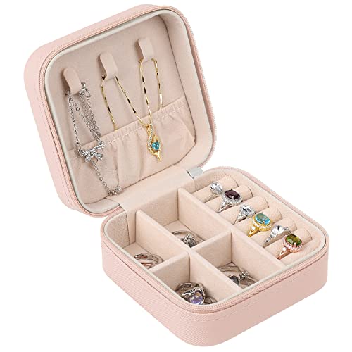 Spaceshoop - Generic Mardiko Travel Jewellery Box for Women Girls, Jewellery Organiser Small Jewelry Box Mini Travel Jewlery Case, Jewellry Storage for Necklaces Rings Earrings Bracelets, Pink