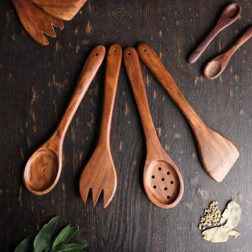 - Natural Wood Grain: Each piece features unique wood grain patterns characteristic of pine, adding rustic charm and natural beauty to your kitchen utensil collection