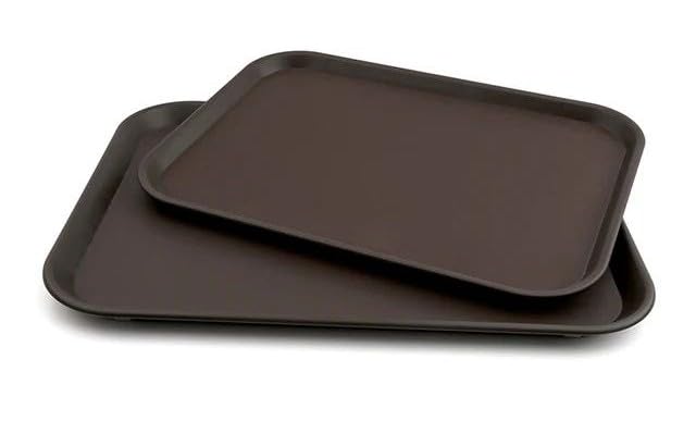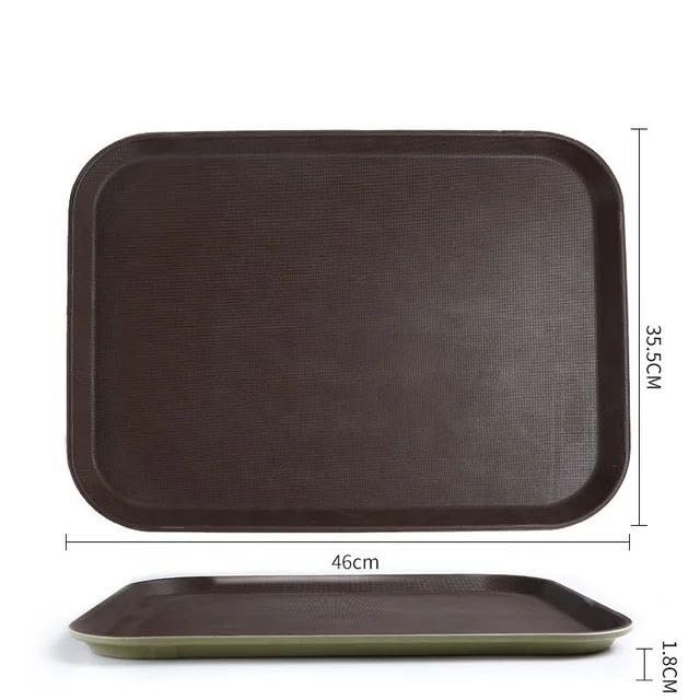 Generic - صينية تقديم مستطيلة غير قابلة للانزلاق بلمسة نهائية تشبه الجلد البني