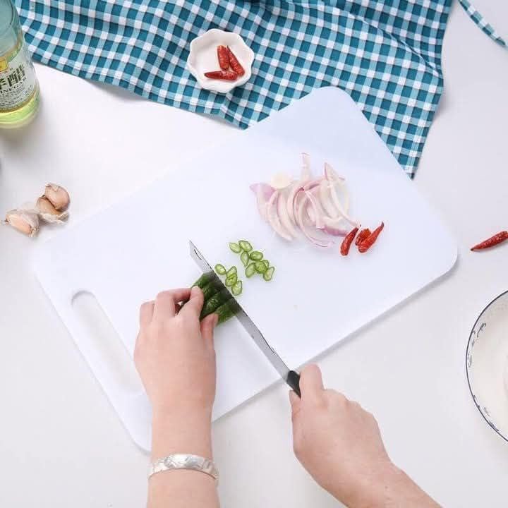 - تصميم احترافي: لوح تقطيع بلاستيكي أبيض كبير مع مقبض حمل مريح، مثالي للاستخدام اليومي في المطبخ