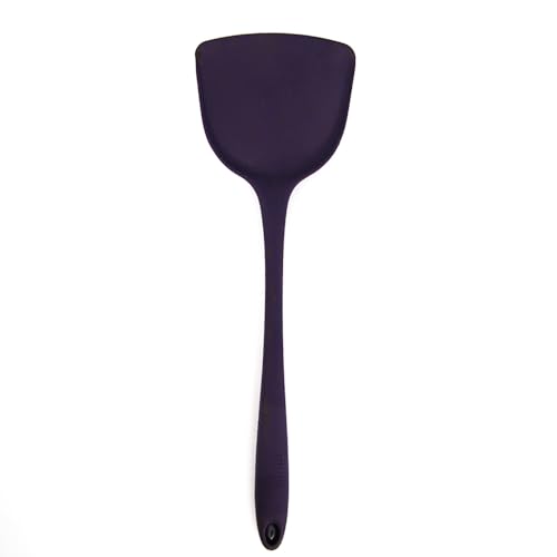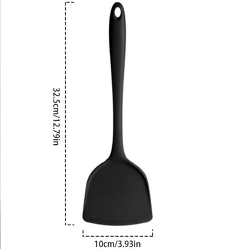 Generic - ملعقة سباتولا مسطحة سيليكون مانعة للالتصاق للاستخدام مع طاسة ووك، لون أسود