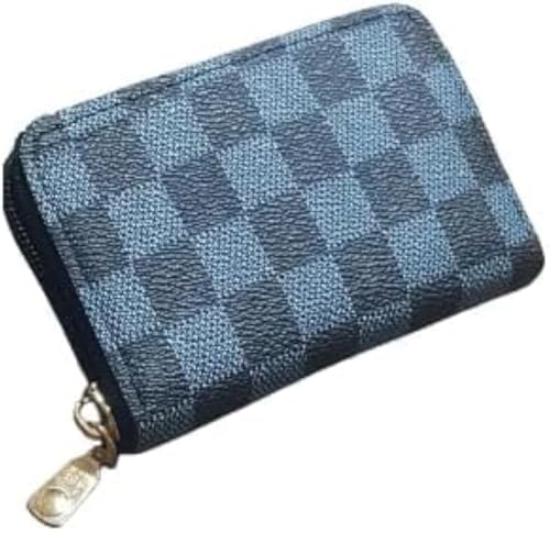 Generic - محفظة من الجلد الصناعي للجنسين، بتصميم زيب محيط باللون الأزرق، مع فتحات للبطاقات والعملات