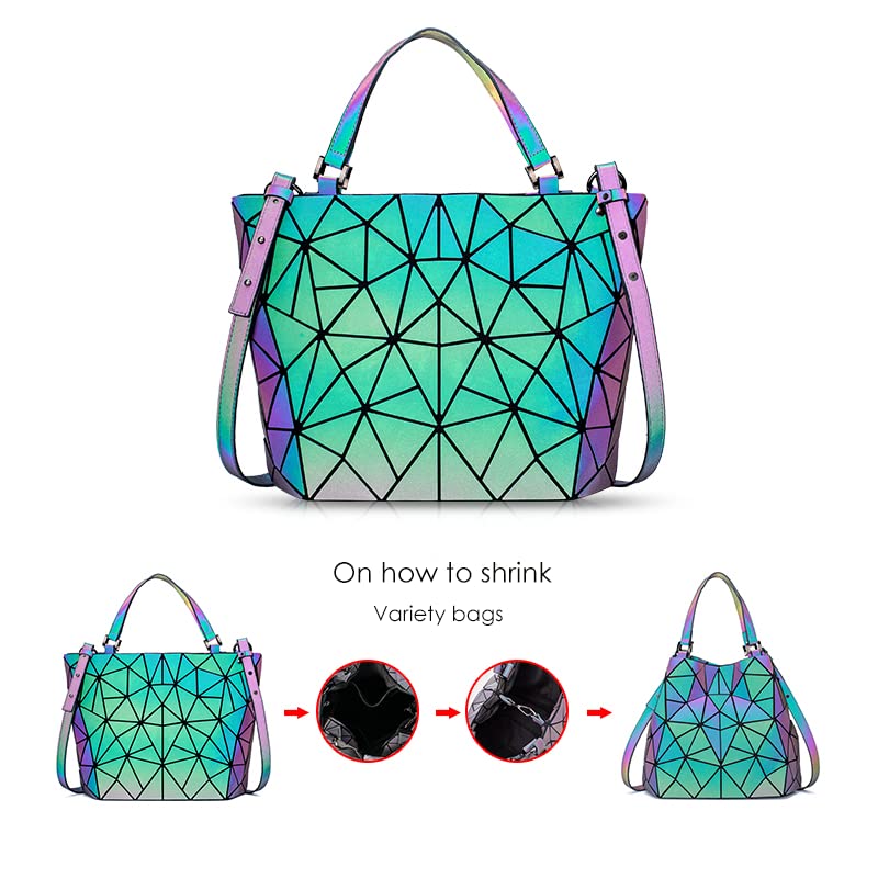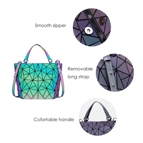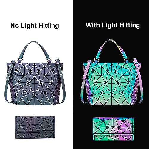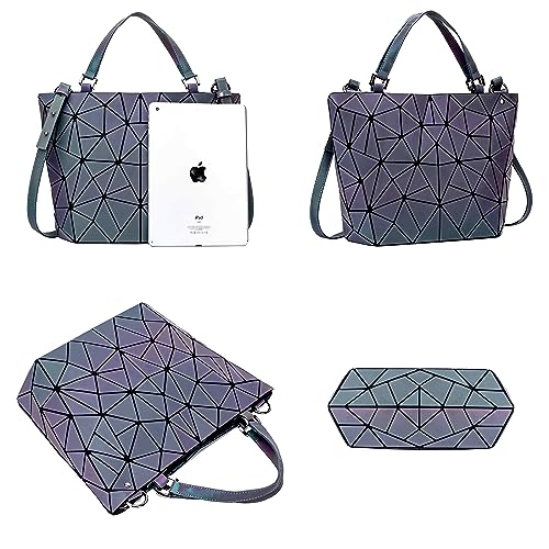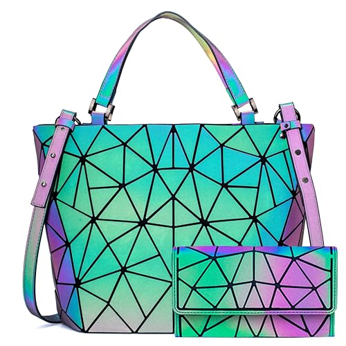 MESSGAIL - طقم من شنطة يد /شنطة كتف لامعة بتصميمات هندسية للنساء، شنطة كروس عاكسة تعطي انطباع هولوجرافيكي مع محفظة برّاقة