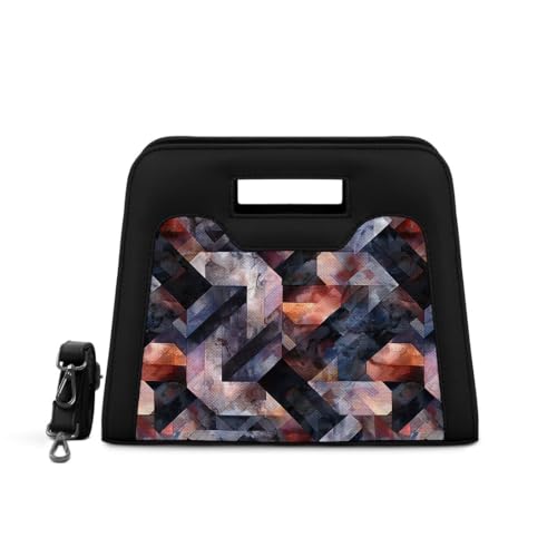 Generic - Geometric Pattern Crossbody Handbag, Black with Abstract Design, Rectangular Shape