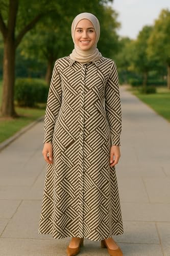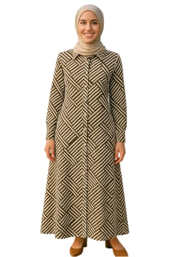 Generic - Geometric Print Long Dress, Button-Down, brown and off white Pattern, Size 2xl