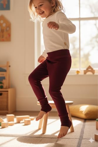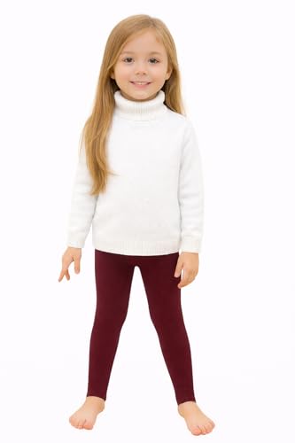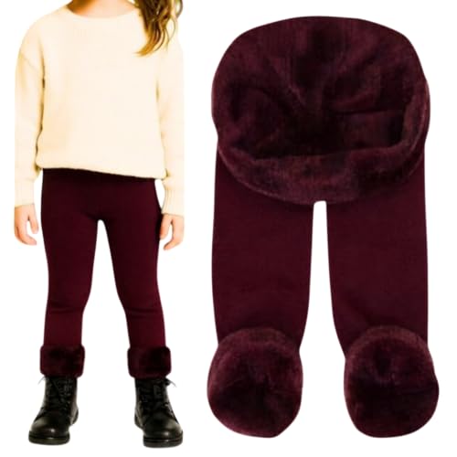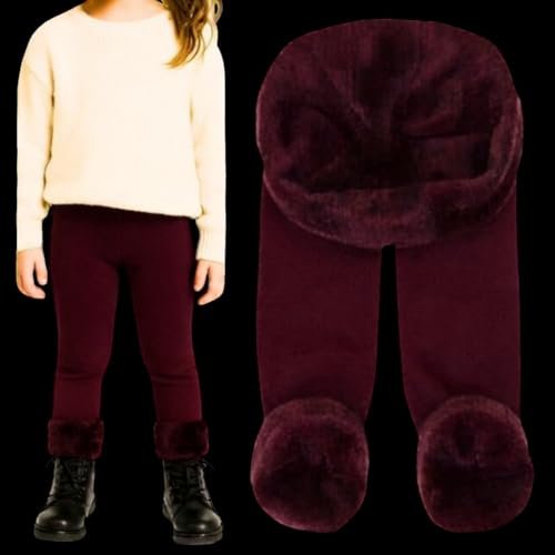 Generic - Girls Fleece Lined Leggings, Burgundy, Thermal Winter Tights, Warm Footless Pants size 6-8 years