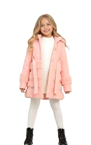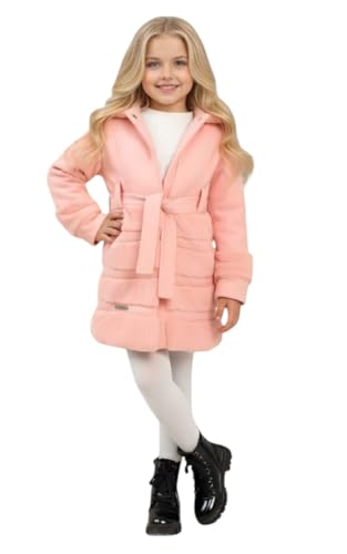 Generic - Girls Hooded Fleece Coat, Pink, Belted with Pockets, Long Sleeve Winter Jacket