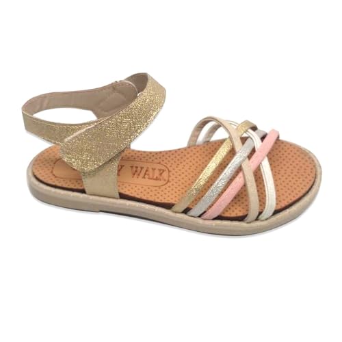 generic - Girls' Metallic Strappy Sandals, Gold Pink Silver, Ankle Strap, Comfort Footbed 400