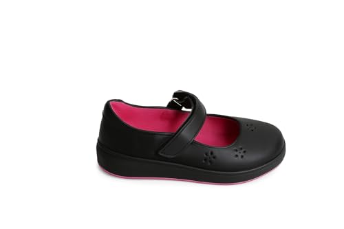 generic - Girls' School Shoes, Black with Pink Interior, Hook and Loop Strap 303