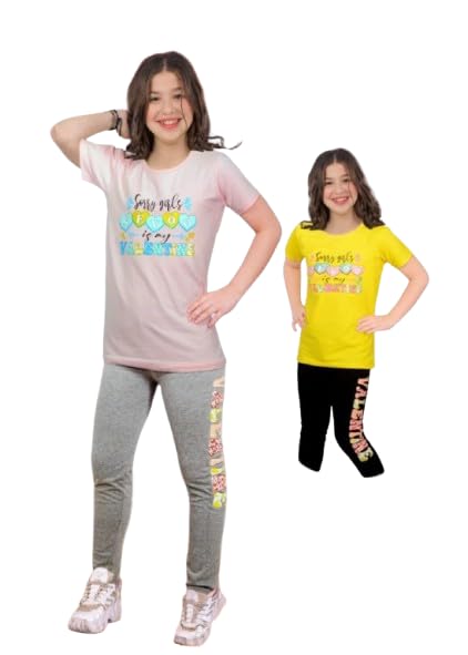 Generic - Girls' Summer Casual T-Shirt and Leggings Set, Pink/Yellow/Grey, 2-Piece Outfit (semon, 6)
