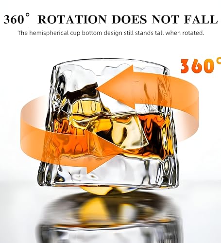 - This set includes 4 uniquely designed rotating whiskey glasses, each with a 300 ml capacity, perfect for serving whiskey, cognac, vodka, gin, or other spirits, making it ideal for both home and restaurant use.