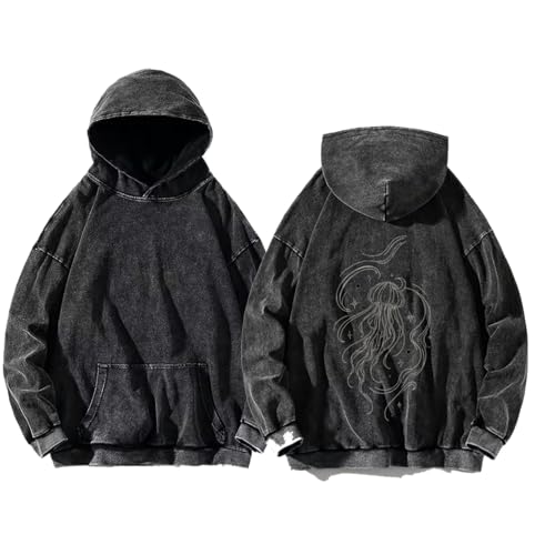 Generic - سويت شيرت بغطاء للرأس مطبوع عليه قنديل البحر المتوهج من الخلف