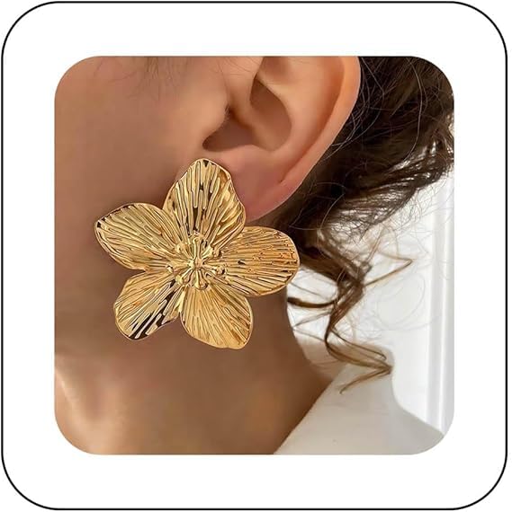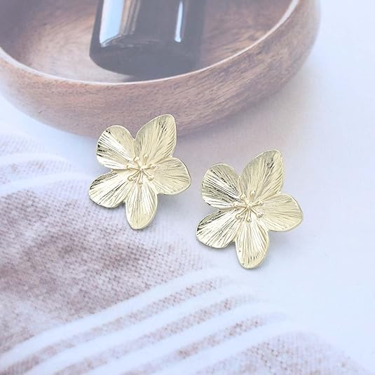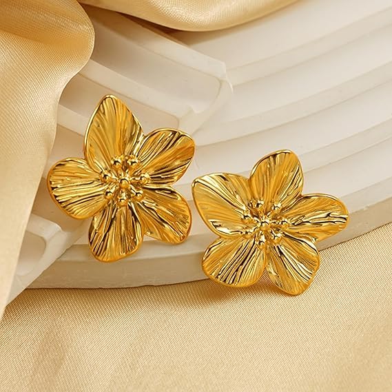 Generic - Gold-Plated Floral Stud Earrings, Large Statement Flower Design, Fashion Jewelry