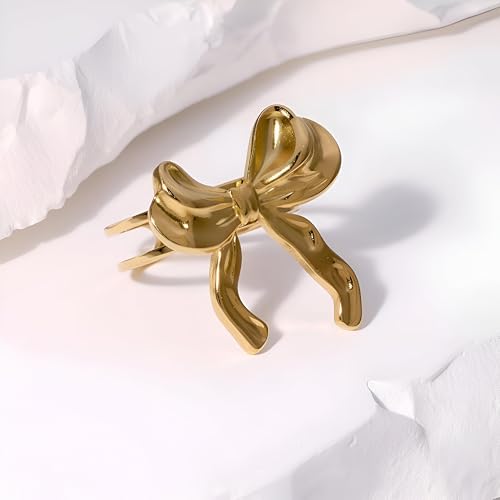 Generic - Golden Bow Loop-Elegant Women's Accessory that features a gold coated ribbon bow design with a knot tone, ideal for formal events and casual stylish appearance