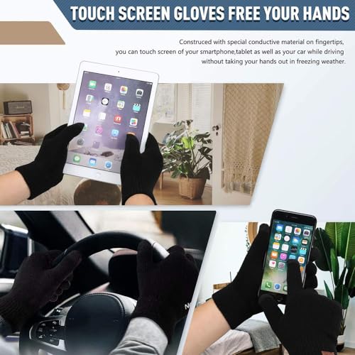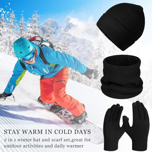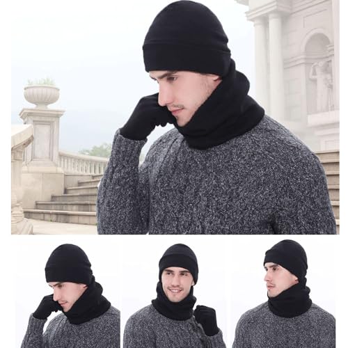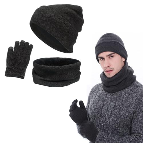 Goodern - غوودرن مجموعة من 3 قطع من قبعة صغيرة ووشاح وقفازات وقفازات محبوكة سميكة مبطنة بالصوف للجنسين قفازات تعمل باللمس ووشاح تدفئة للرقبة متعدد الوظائف للشتاء مجموعة تدفئة مريحة للسفر في الهواء الطلق والتزلج