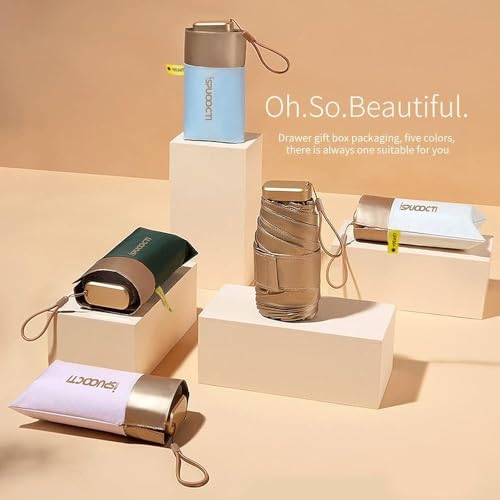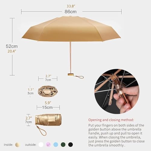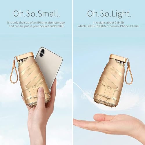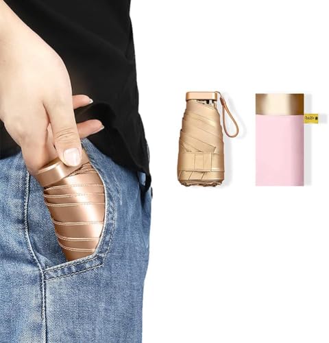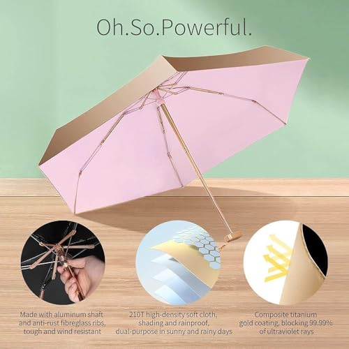 GQ - GQ Folding Umbrella, Mini Pocket Umbrella, Lightweight Compact Travel Umbrella with UV Protection, Waterproof and Portable, Folding Design for Rain and Sun (Pink)