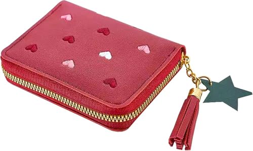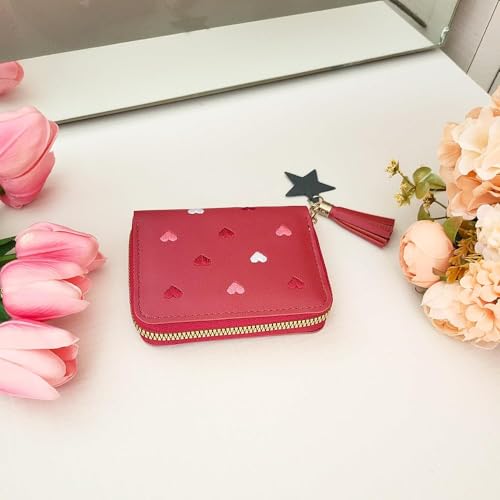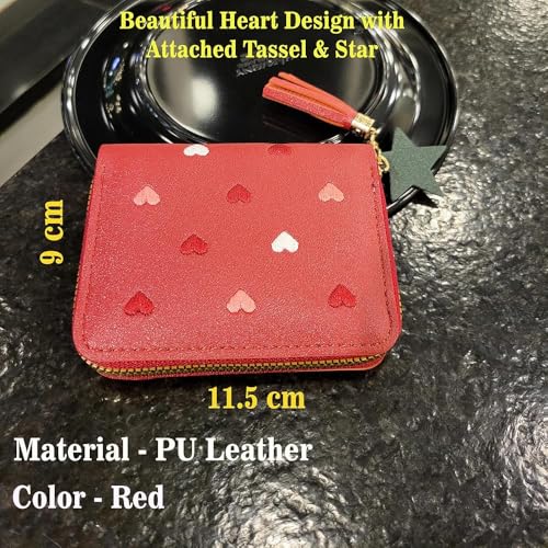 GQ - GQ Gifts Stylish Wallet for Girls & Women with Heart Patterns & Attached Star Pendant & Tassel (RED) | Stylish PU Leather Red Wallet for Girls, Ladies, Women
