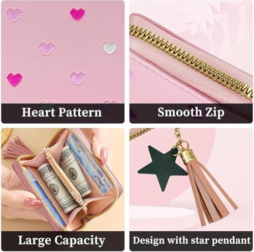 - BEAUTIFUL WALLET FOR GIRLS & WOMEN with Heart Pattern Design & attached Star Pendant & Tassel
