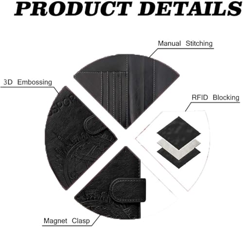 - 👜 Premium Material and Security: Crafted from premium PU leather, this passport holder offers a soft and comfortable touch, secured with a magnetic buckle to keep contents safe. It includes multiple card slots for organizing IDs, credit cards, and travel documents efficiently. Enhanced with RFID-blocking technology, it ensures your personal information stays secure during travels.